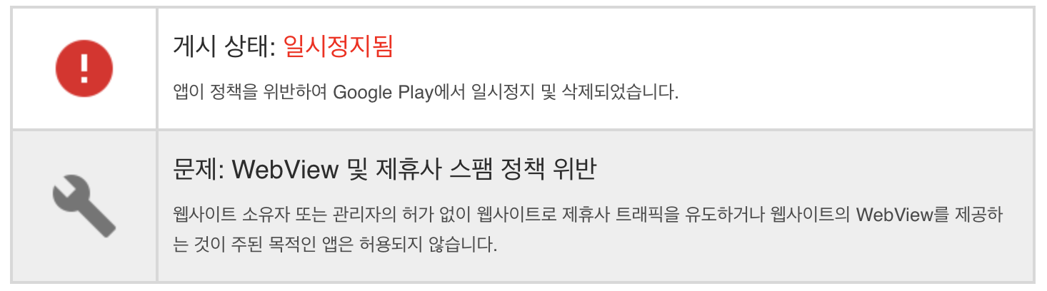 참고 : https://play.google.com/intl/ko/about/spam-min-functionality/spam/webviews-affiliate/